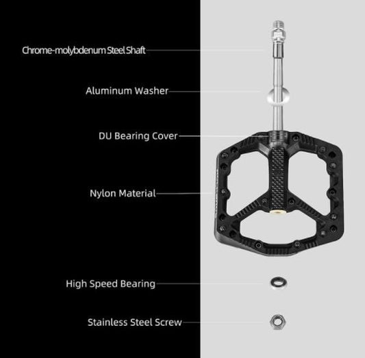 Педалите за планински велосипеди са специално проектирани за тежките условия на каране по терен. Те предлагат необходимата здравина и сцепление, за да се кара безопасно и ефективно дори на неравен терен и при лоши метеорологични условия. Тези педали са известни със своята издръжливост и са основен компонент за всеки ентусиаст за планинско колоездене.
