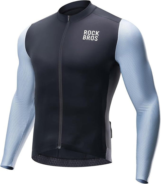 ROCKBROS Велосипедна фланелка с дълъг ръкав Мъжка велосипедна фланелка Дишаща бързосъхнеща велосипедна тениска с цип и 3 джоба за мъже шосеен велосипед MTB европейски размер