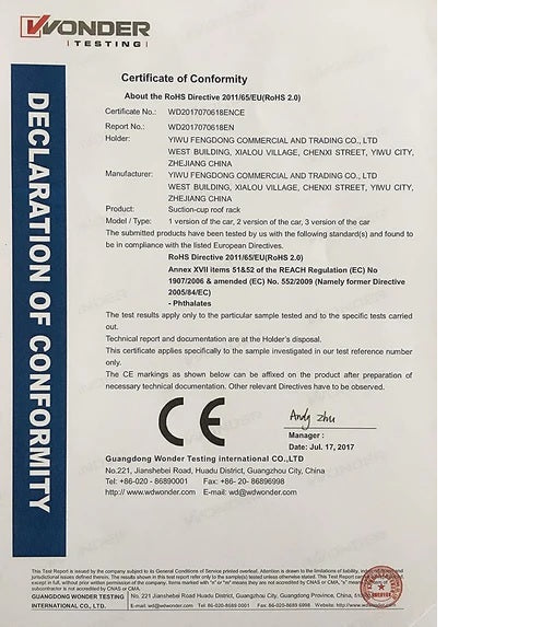 CE СЕРТИФИКАТ: Ние имат CE сертификат за багажника за велосипеди.