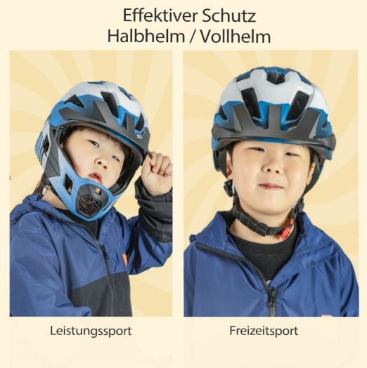 Подвижният дизайн на каската ви позволява да я използвате в два варианта. Режимът на пълна каска е подходящ за състезателни спортове с висок риск, а режимът на половин каска е подходящ за непринудени спортове с нисък риск.