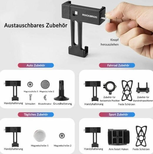 Поставката за мобилен телефон може да се използва директно с различни аксесоари за 4 различни приложения: 1: използване в кола 2: използване по време на шофиране. 3: Използвайте у дома. 4: Използвайте по време на тренировка.