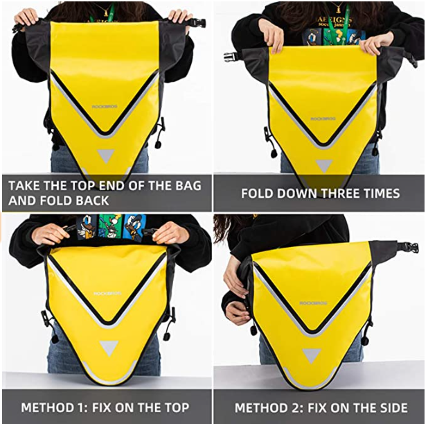 100% ВОДОУСТОЙЧИВ: Този заден кош ROCKBROS, изработен от найлон 840D, е напълно водоустойчив, издръжлив и устойчив на разкъсване. С подвижен дизайн, тази чанта може идеално да защити вашите вещи при силен дъжд.