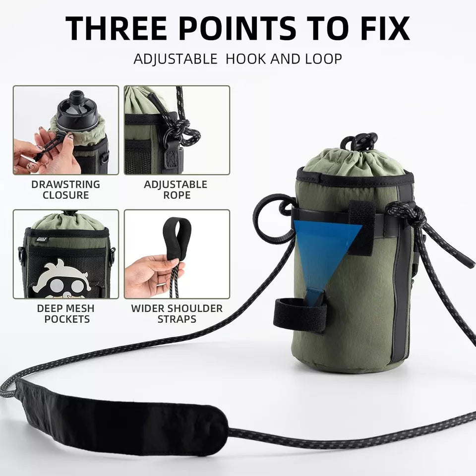 - Подходящ размер: С диаметър от около 10 см, чантата за бутилка вода пасва на повечето бутилки вода, за да отговори на различните ви нужди, когато шофирате. Внимателно проектираният мрежест джоб за съхранение отстрани осигурява място за малки предмети като мобилни телефони и енергийни гелове.