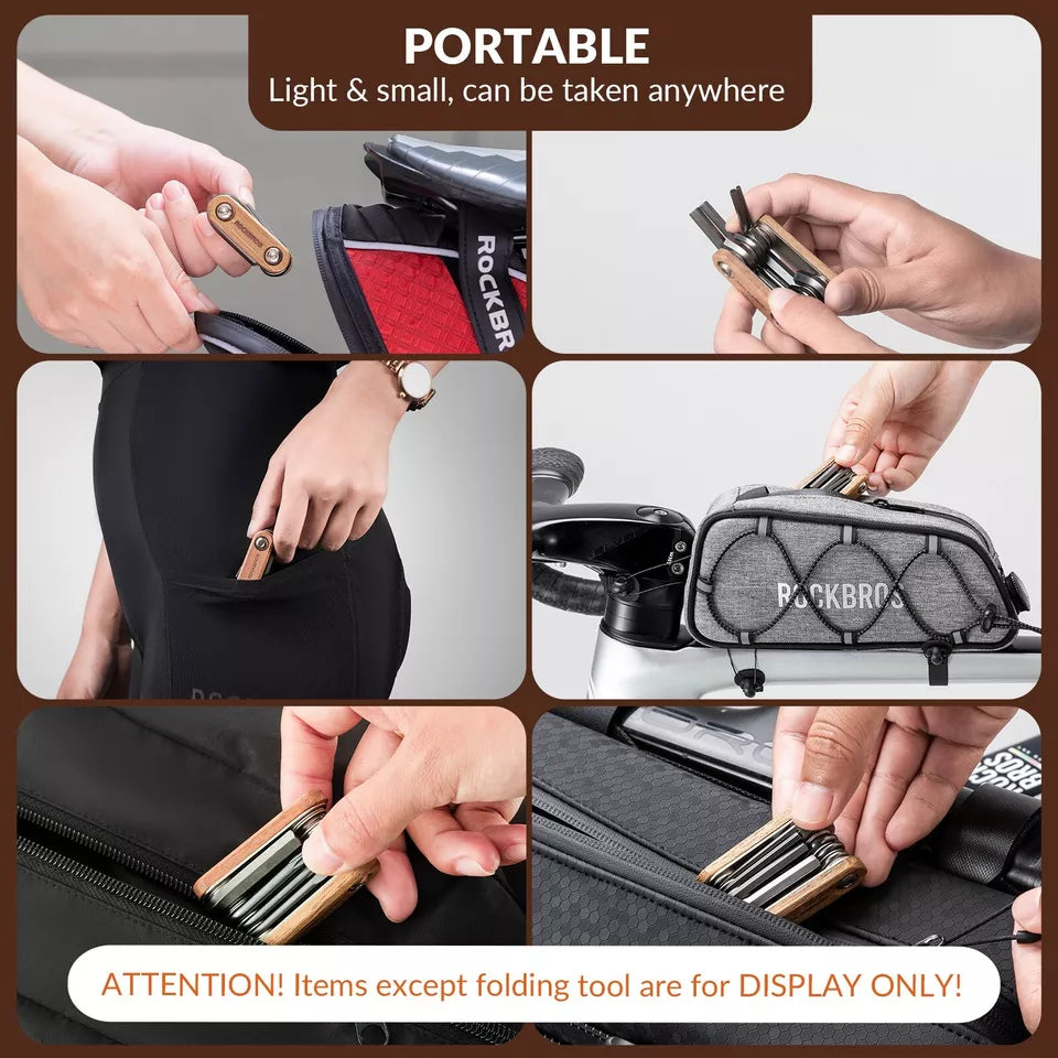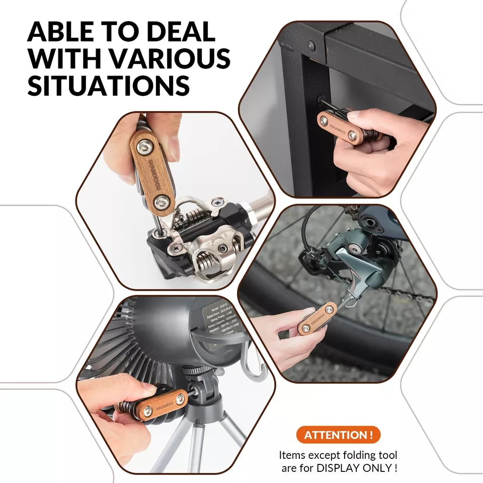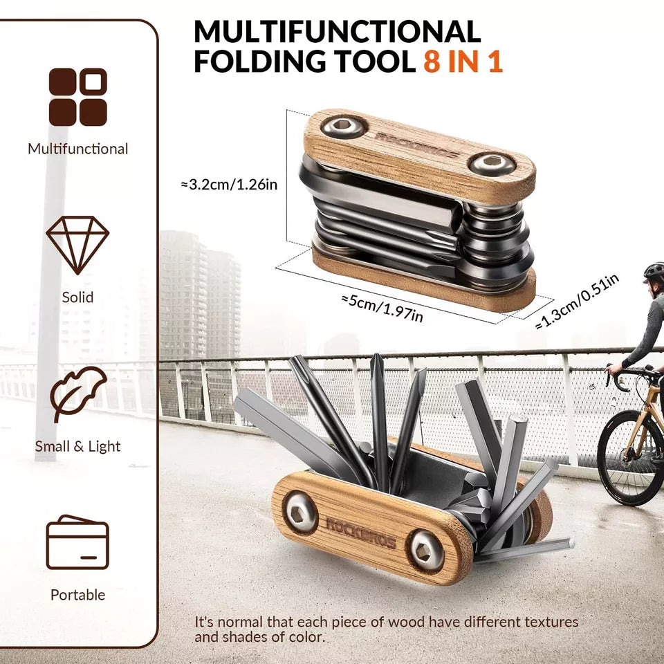 ROCKBROS Инструмент за ремонт на велосипеди 8 в 1 Дървен мултитул от неръждаема стомана