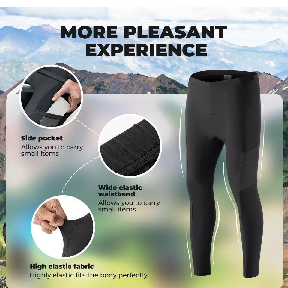 Мъжки панталон за колоездене ROCKBROS, дълъг компресионен панталон за колоездене с джобове, подплатени клинове, еластичен, дишащ велосипеден панталон с подплата на седалката за есен/пролет