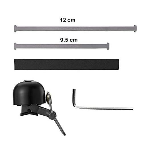 Подходящо за повечето велосипеди: Има 2 ленти с различни дължини (9,5 мм и 12 мм). Звънецът е подходящ за повечето велосипеди. Дори ако имате дебело кормило за велосипед.
