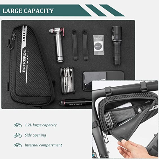 ПОДХОДЯЩ КАПАЦИТЕТ :Само 163 грама, обща площ от приблизително 1,2 литра за ежедневна употреба. Нашата чанта за велосипед е достатъчно голяма за необходимите инструменти и неща като вашия мобилен телефон и ключове. Дизайнът на вътрешния джоб е за малки предмети.