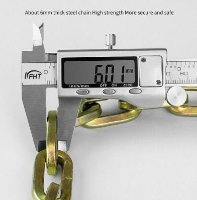 Около 6 mm удебелена стоманена верига, по-безопасна и по-сигурна.